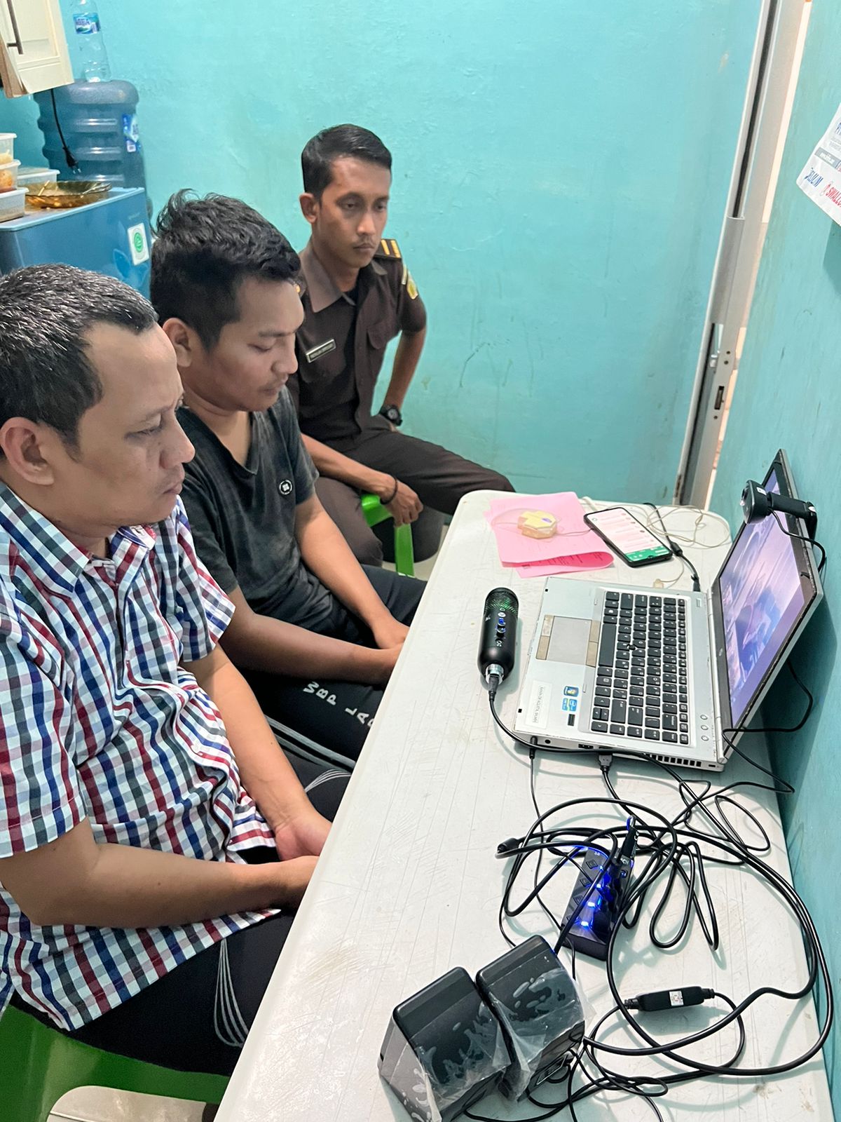 Kedua terdakwa kasus IPAL di Dinkes Deli Serdang,ketika mengikuti sidang secara virtual di PN Tipikor Medan.