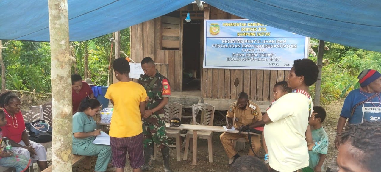 TIMIKA — Sebagai bentuk kepedulian terhadap kesehatan Ibu dan Balita di wilayah binaan, Babinsa Koramil 1710-06/Agimuga dipimpin Serka Eddy Pattipeilohy melaksanakan pendampingan petugas kesehatan dari Puskesmas setempat dalam kegiatan Posyandu di Kampung Yaitak, Distrik Jita, Kab. Mimika, Jumat (3/02/2023).